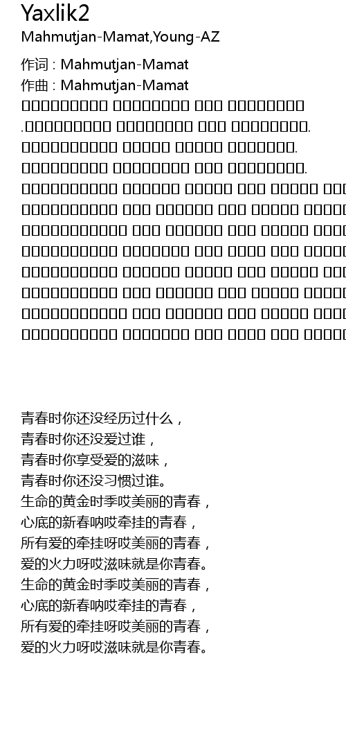 | مۇھەبەتنىڭ ۋولقانى سەن تەمى سەن ياشلىق | |
