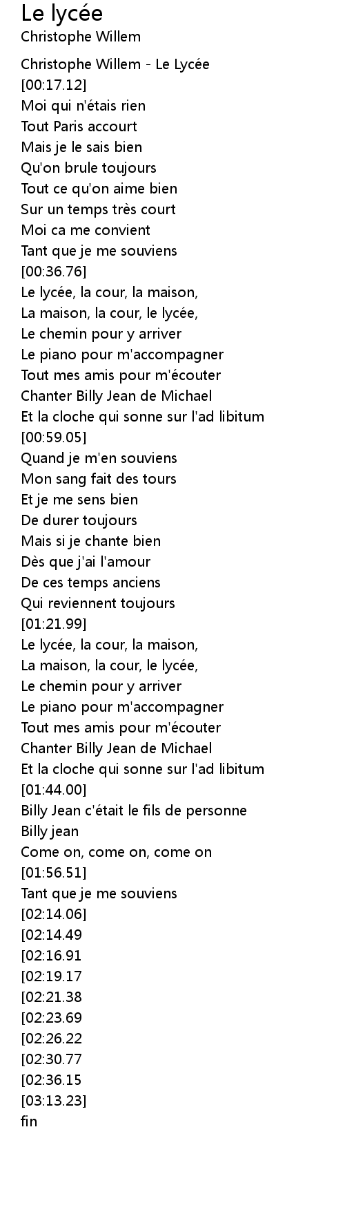 | [00:00.00] | Christophe Willem Le Lyce e |