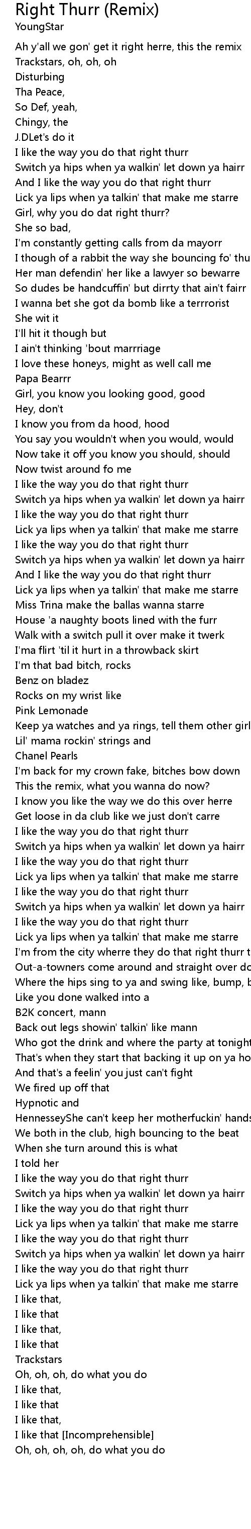 I though of a rabbit the way she bouncing fo' thurr curr |