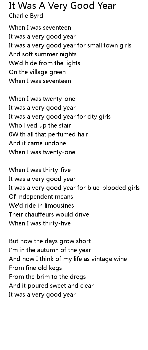 And now I think of my life as vintage wine |