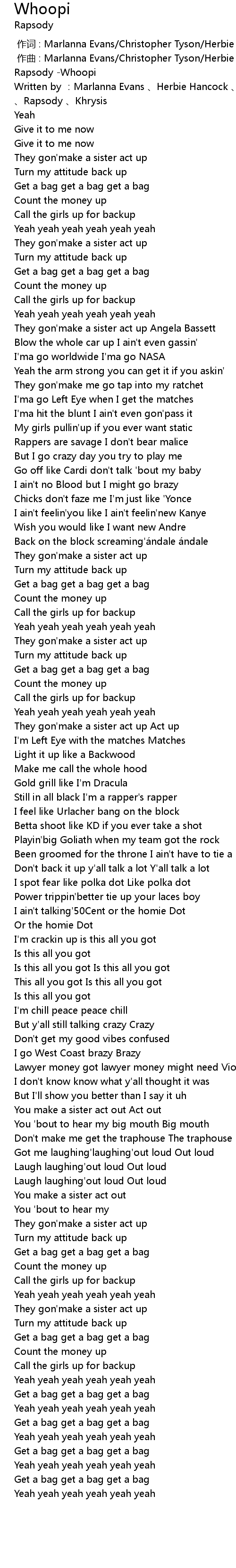 | [00:31.429] | They gon' make a sister act up Angela Bassett |