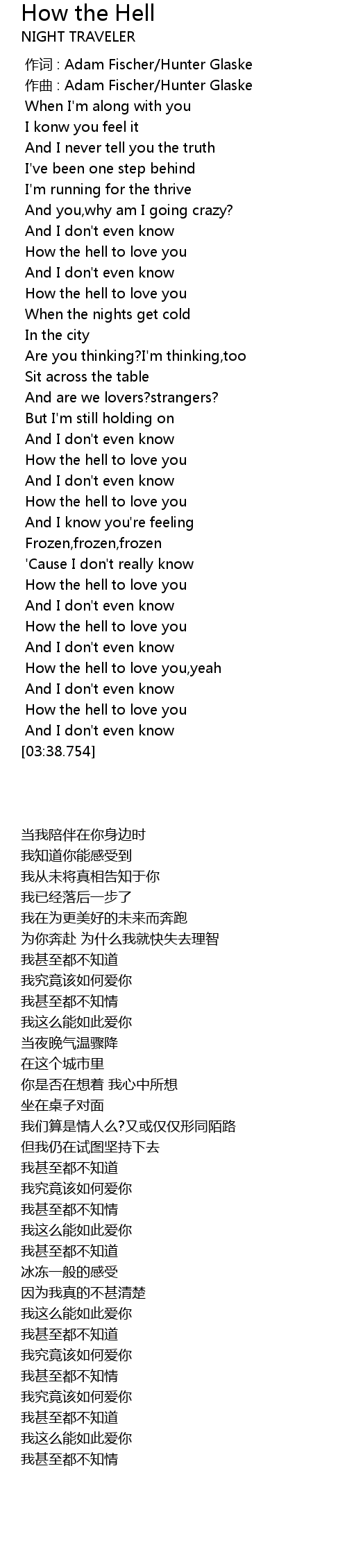 | [00:53.101] | How the hell to love you |