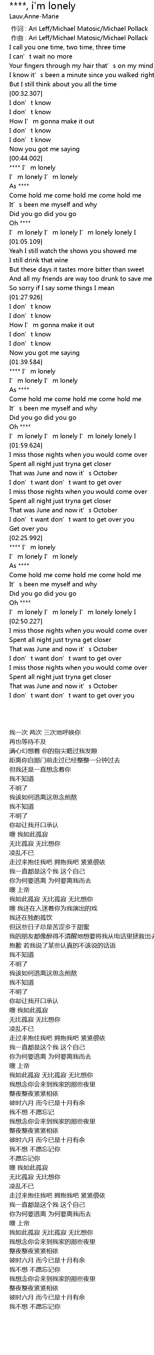 | [01:00.263] | I' m lonely I' m lonely I' m lonely lonely I |