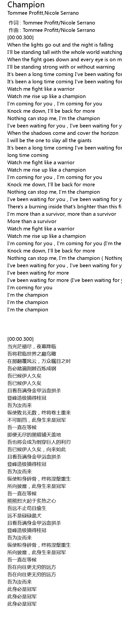 | [00:54.000] | Watch me rise up like a champion |