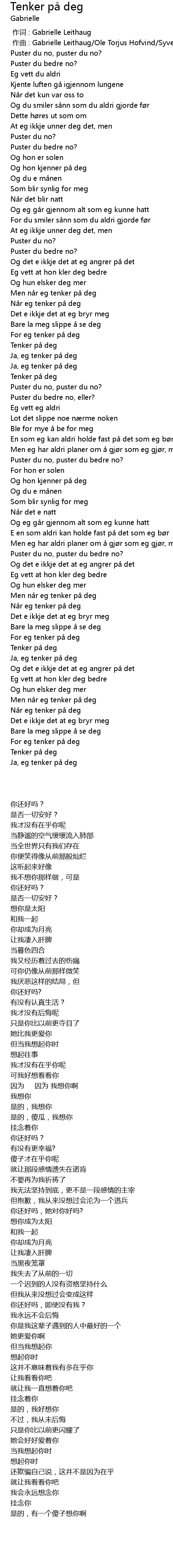 | [00:00.000] | 作词 : Gabrielle Leithaug |