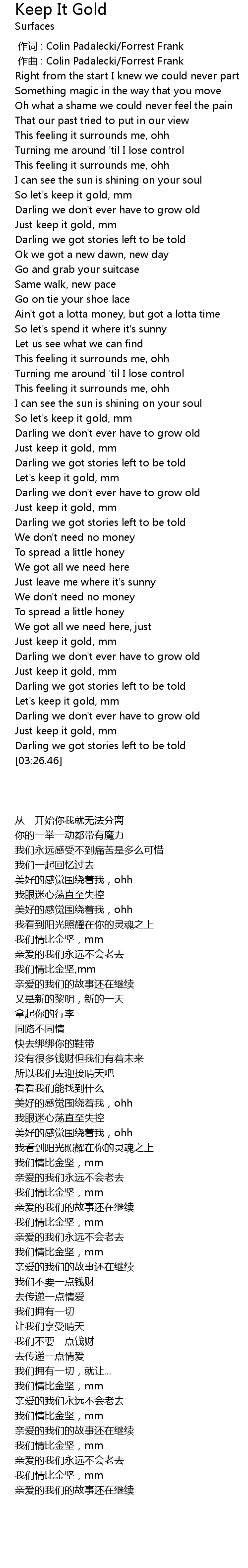 | [00:00.00] | 作词 : Colin Padalecki/Forrest Frank |