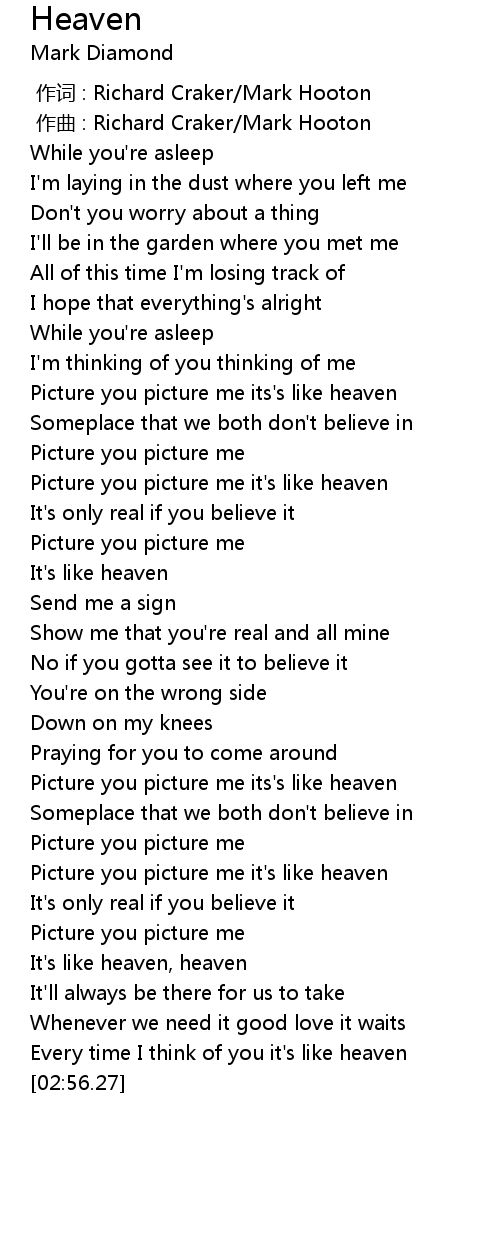 | [02:47.43] | Every time I think of you it' s like heaven |