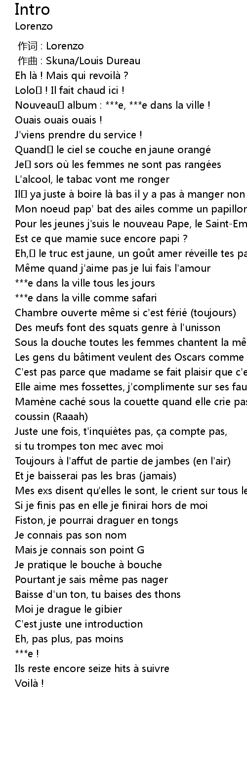 | [00:14.16] | Nouveau album : ***e, ***e dans la ville ! |