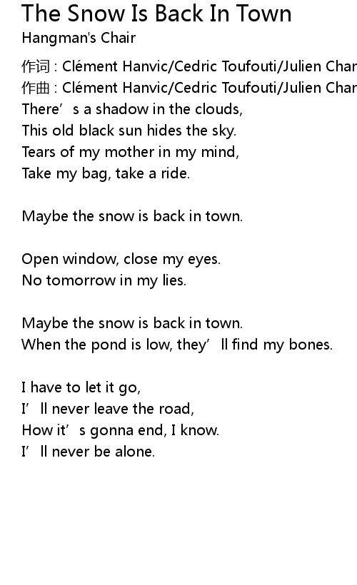| 作词 : Clément Hanvic/Cedric Toufouti/Julien Chanut/Mehdi Thepegnier | |
