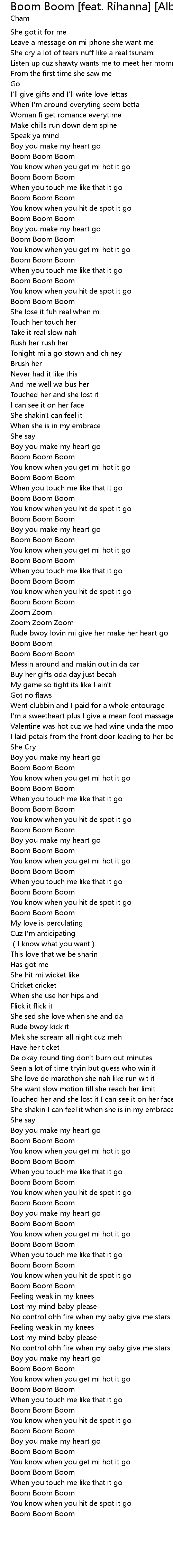 | [03:00.24] | Boom Boom Boom |