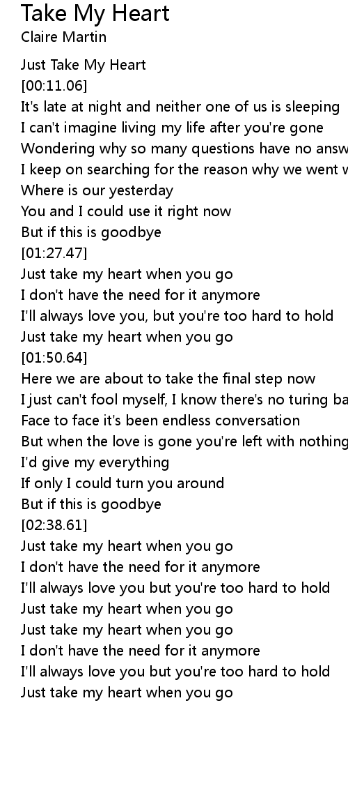 Just take my heart when you go |