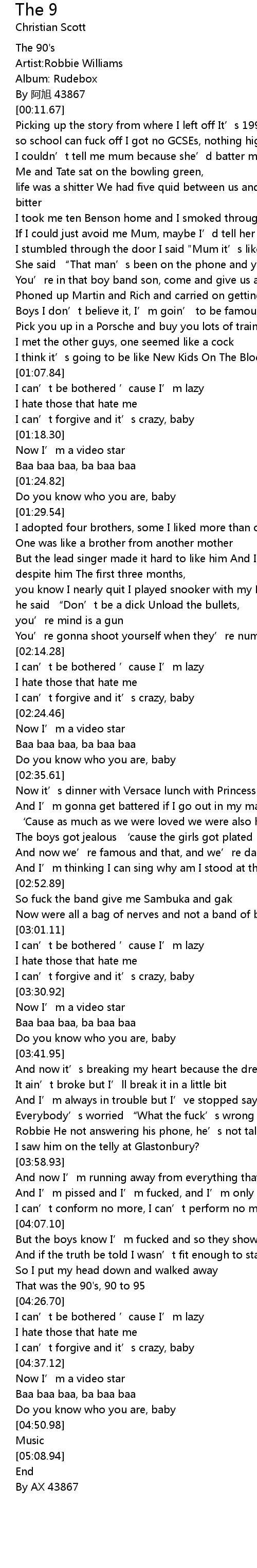 | [00:05.98] | Artist:Robbie Williams |