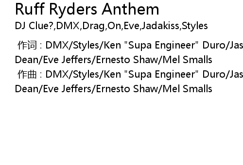 | [00:00.000] | 作曲 : DMX/Styles/Ken "Supa Engineer" Duro/Jason Phillips/Kasseem Dean/Eve Jeffers/Ernesto Shaw/Mel Smalls |