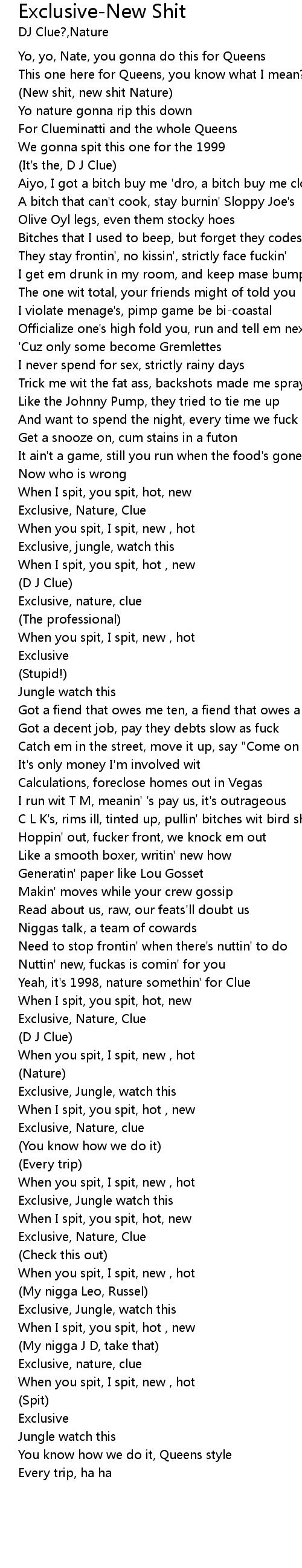 | Nuttin' new, fuckas is comin' for you | |