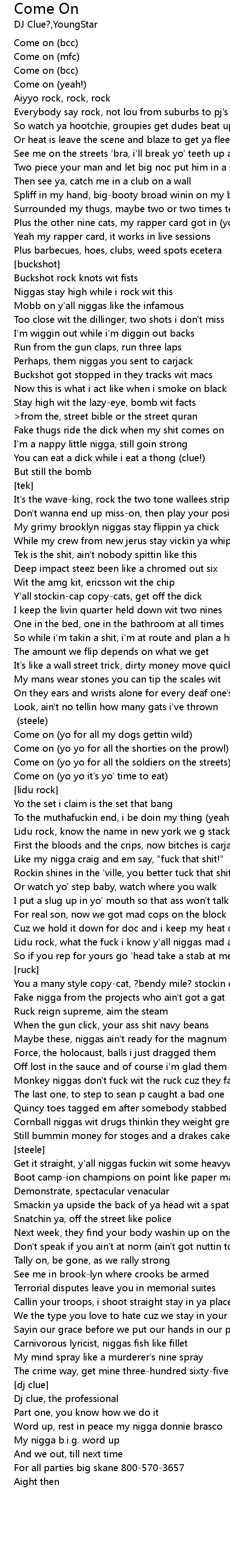 | Come on (yo yo for all the soldiers on the streets) | |