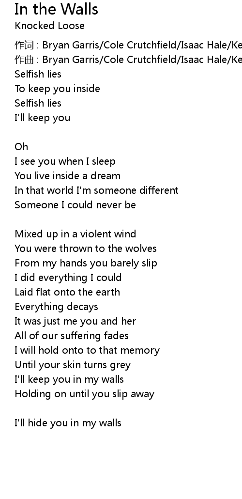 | 作词 : Bryan Garris/Cole Crutchfield/Isaac Hale/Kevin Otten/Kevin Kaine | |