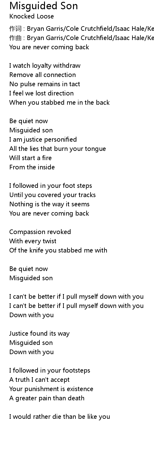 | 作词 : Bryan Garris/Cole Crutchfield/Isaac Hale/Kevin Otten/Kevin Kaine | |
