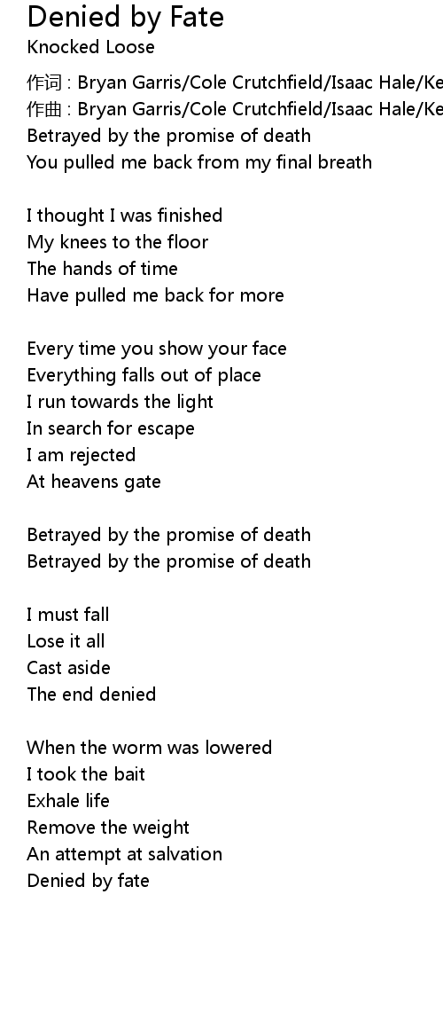 | Song | Denied by Fate |