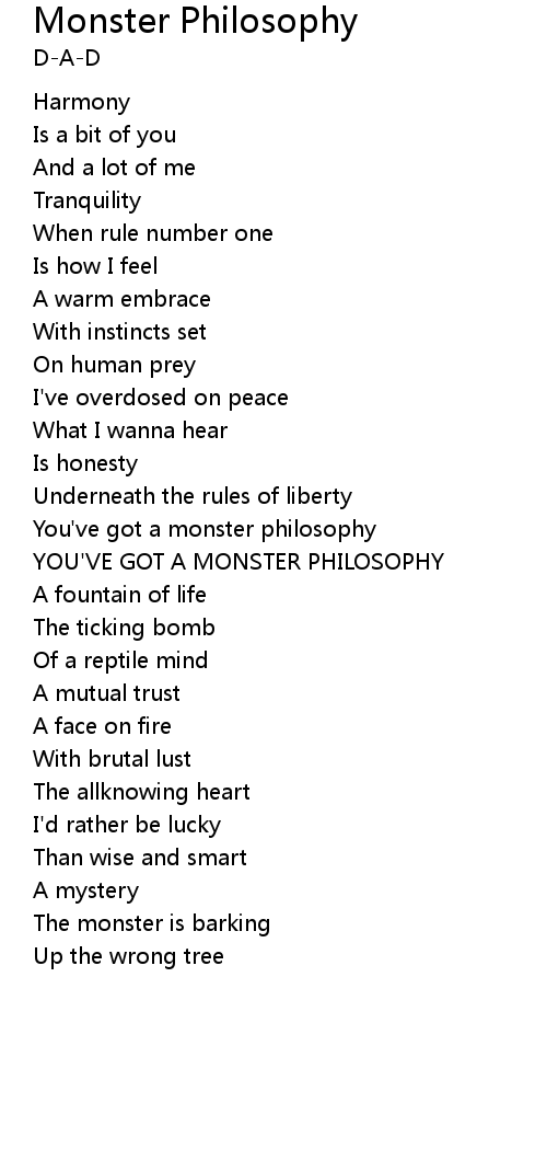 | You've got a monster philosophy | |