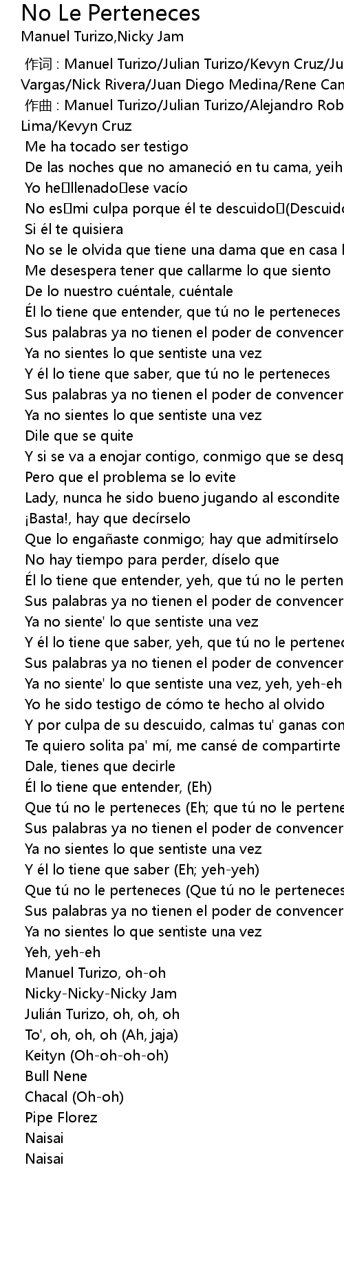 | [02:51.050] | Que tú no le perteneces (Eh; que tú no le perteneces) |