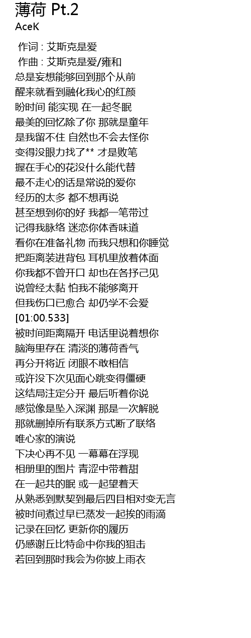 | [00:01.000] | 作曲 : 艾斯克是爱/雍和 |