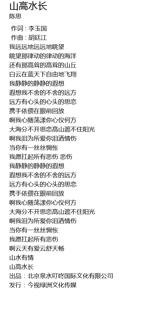 | [04:22.37] | 山高水长 |