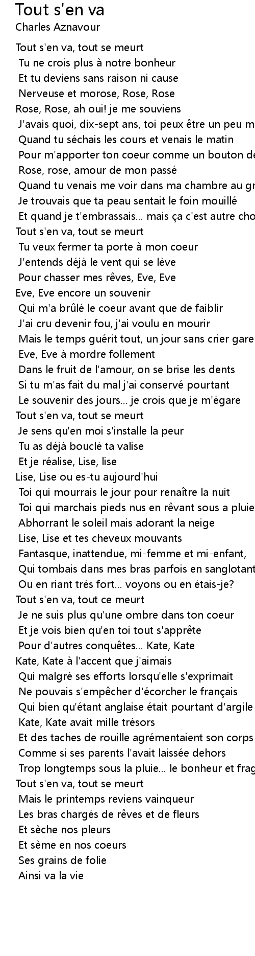 | Mais le temps gue rit tout, un jour sans crier gare | |
