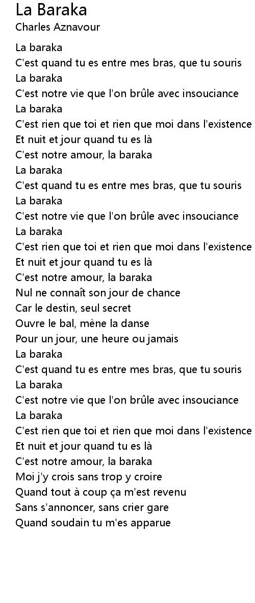 | Song | La Baraka |