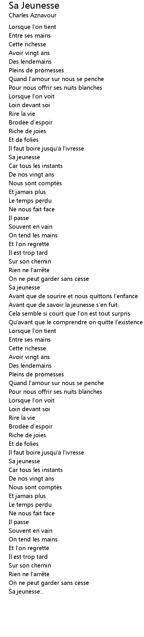 | Song | Sa Jeunesse |