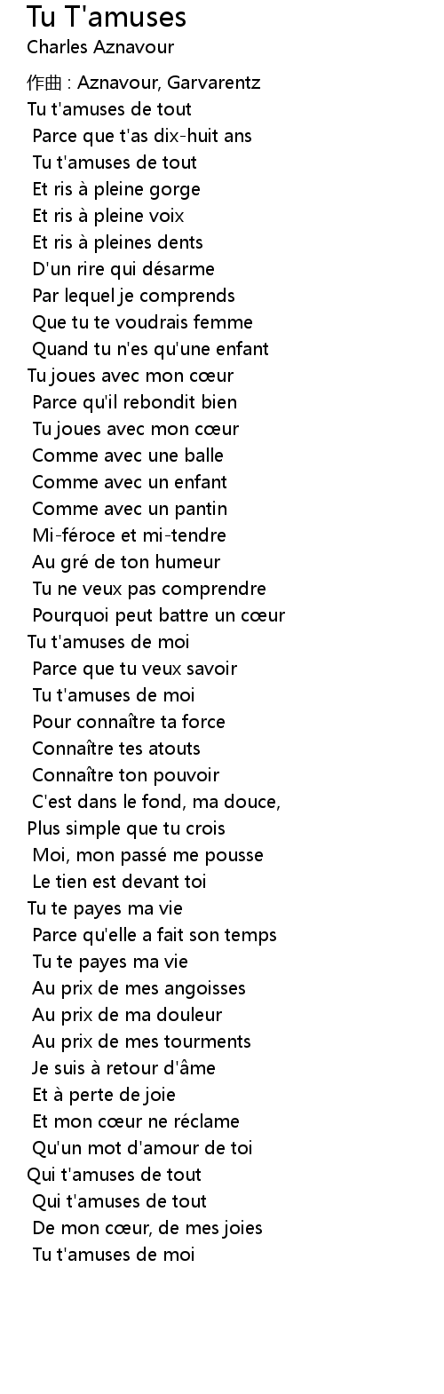 | Song | Tu T'amuses |