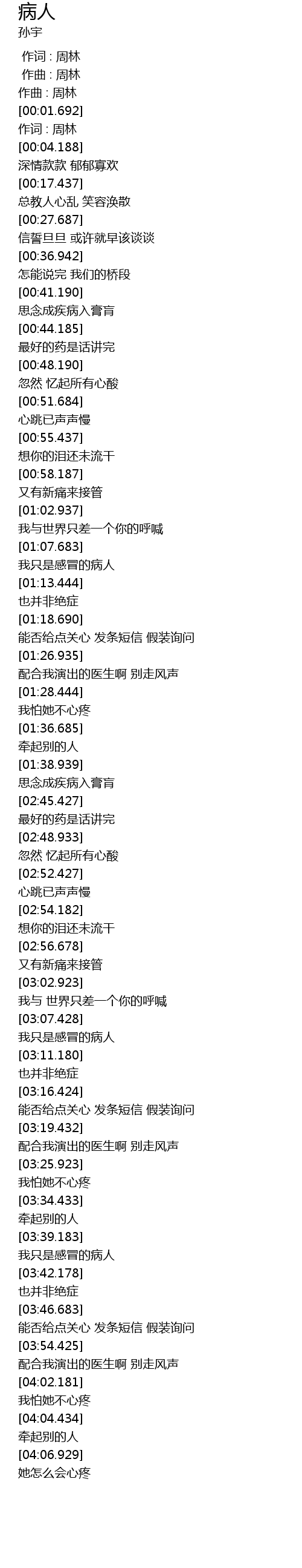 | [03:40.181] | 我只是感冒的病人 |
