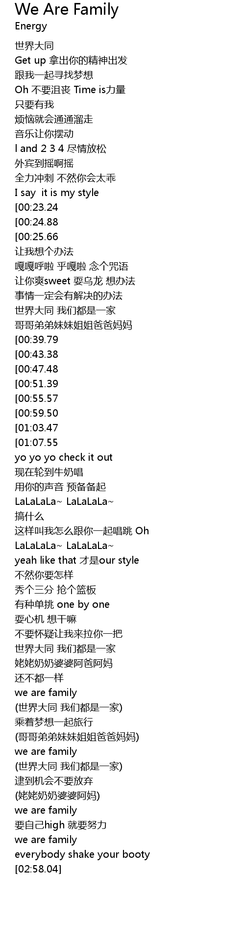 | [00:35.50] | shì jiè dà tóng wǒ men dōu shì yī jiā |