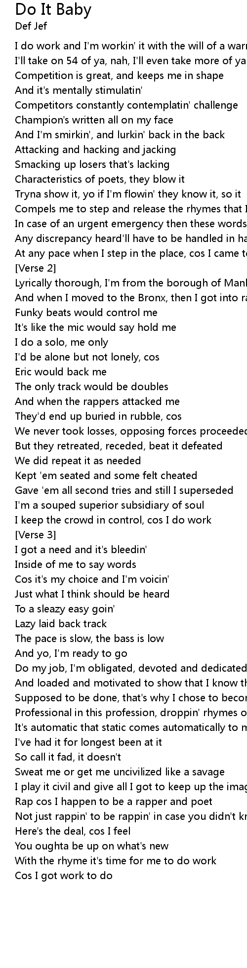 With the rhyme it's time for me to do work |
