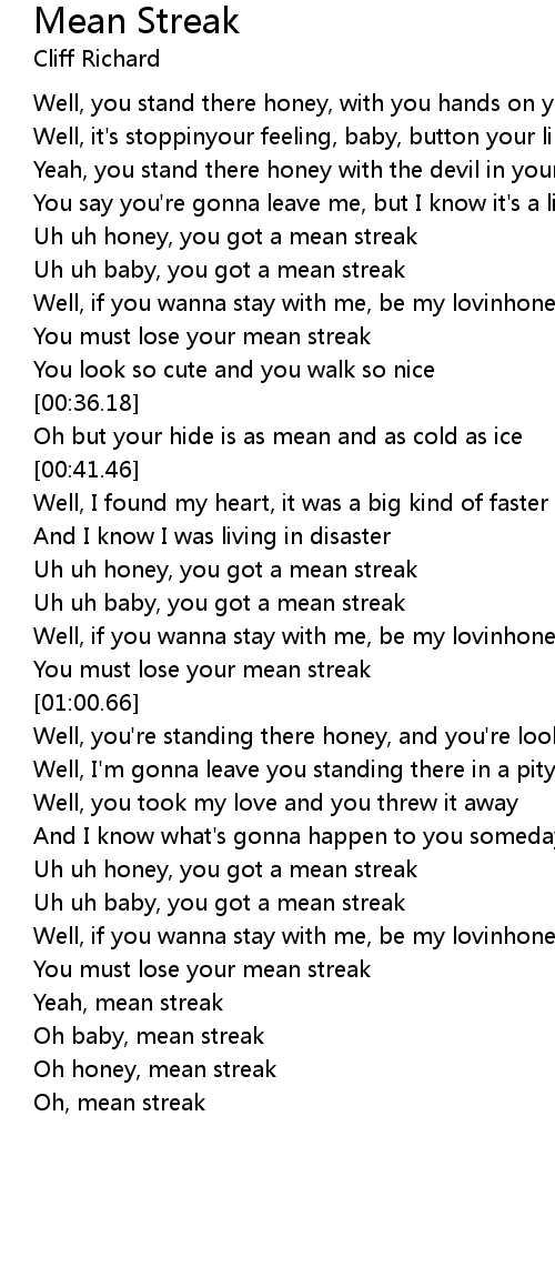 Oh baby, mean streak |