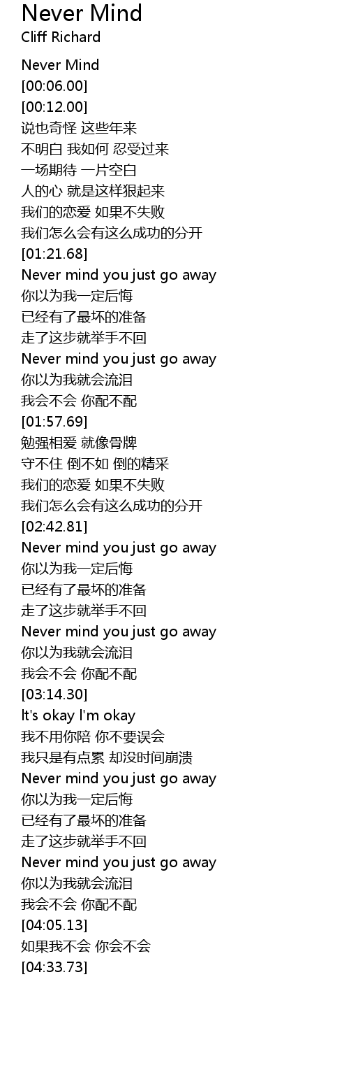 | [00:02.00] | Never Mind |