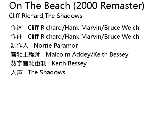 | [00:00.000] | zuò qǔ : Cliff Richard Hank Marvin Bruce Welch |