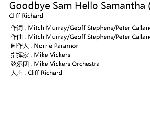 | Song | Goodbye Sam Hello Samantha (1998 Digital Remaster) |