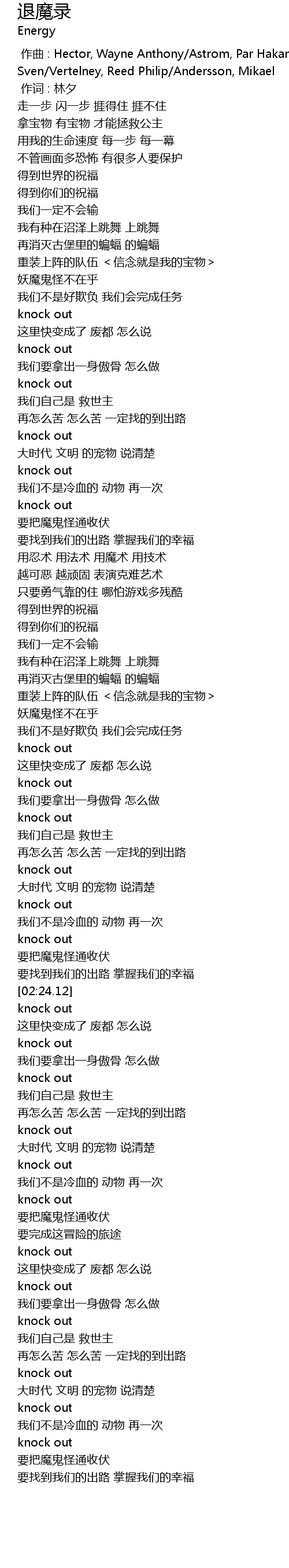 | [01:11.95] | 要把魔鬼怪通收伏 |