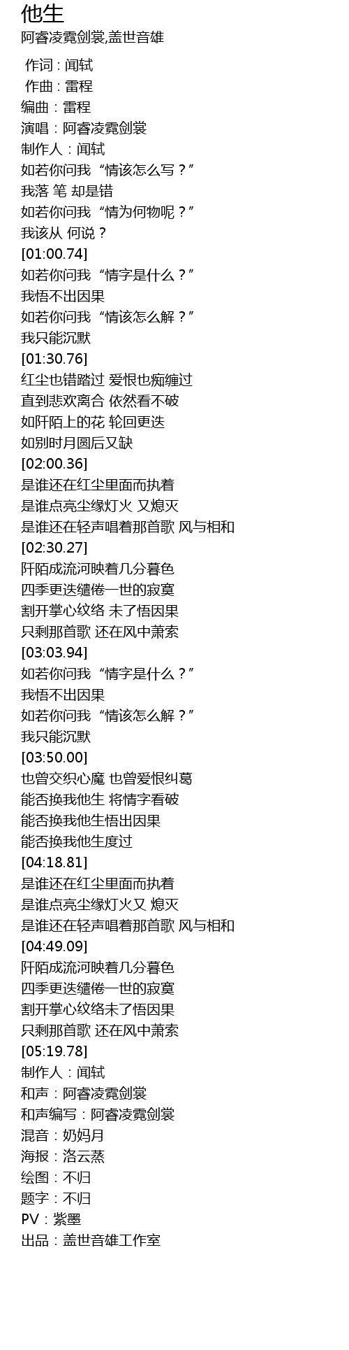 | [05:23.33] | 和声:阿睿凌霓剑裳 |