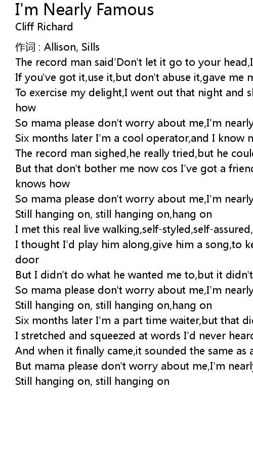 | So mama please don' t worry about me, I' m nearly famous now | |