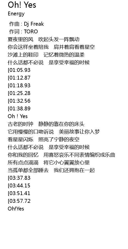 | [00:58.39] | 什么话都不必说 是享受幸福的时候 |