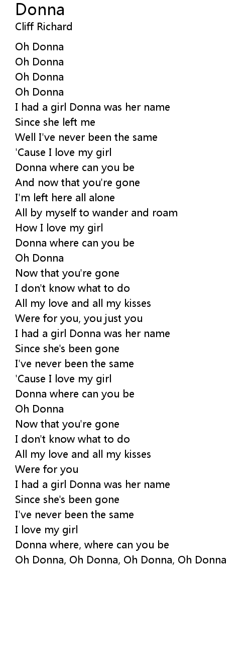 Oh Donna, Oh Donna, Oh Donna, Oh Donna |