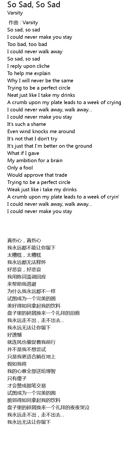 | [02:30.413] | A crumb upon my plate leads to a week of cryin' sleep |