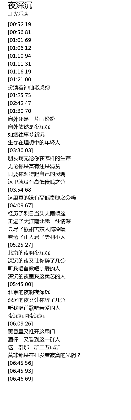 | [05:45.45] | 北京的夜啊夜深沉 |