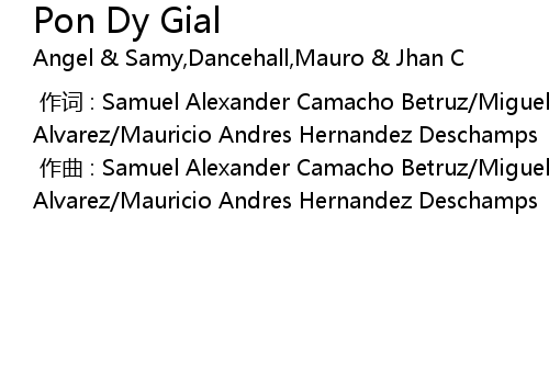 | [00:00.00-1] | 作词 : Samuel Alexander Camacho Betruz/Miguel Angel Camacho Alvarez/Mauricio Andres Hernandez Deschamps |