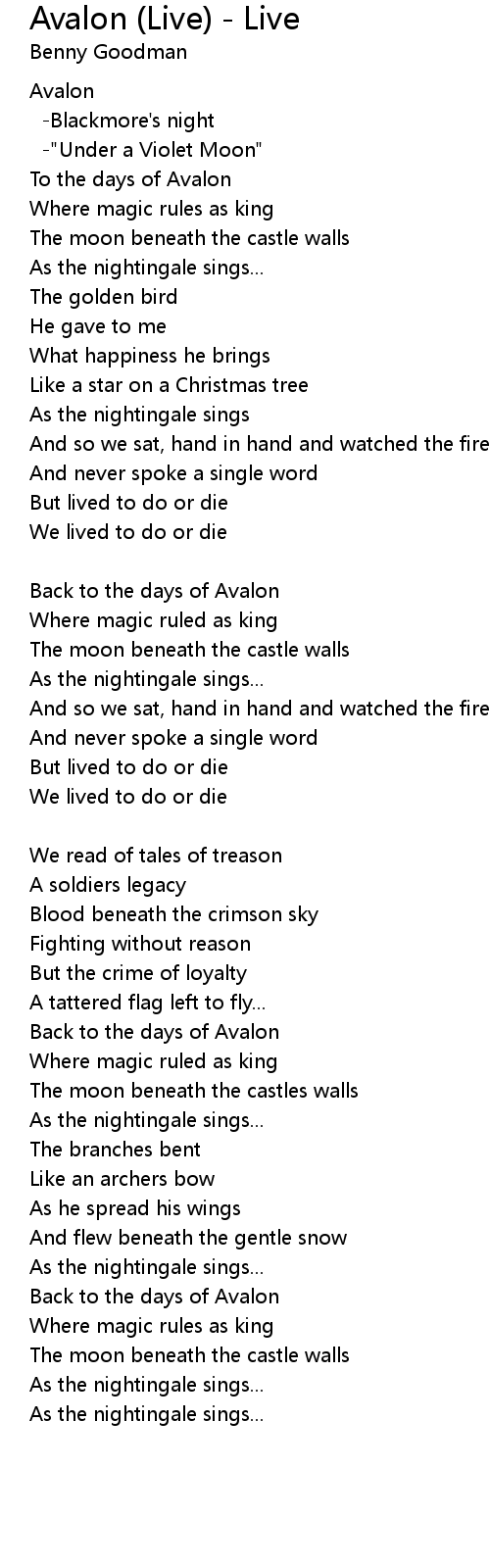To the days of Avalon |