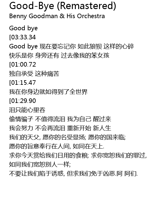 | [00:00.00] | Good bye |