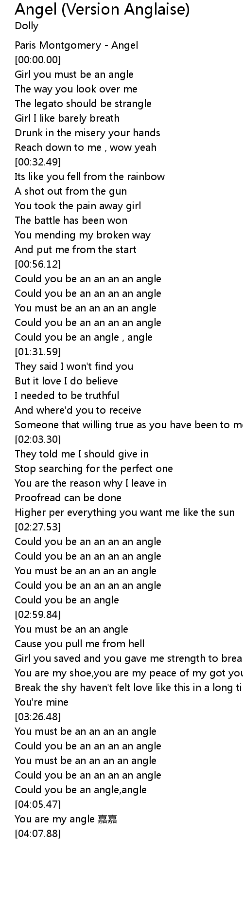 | [01:09.72] | You must be an an an an angle |