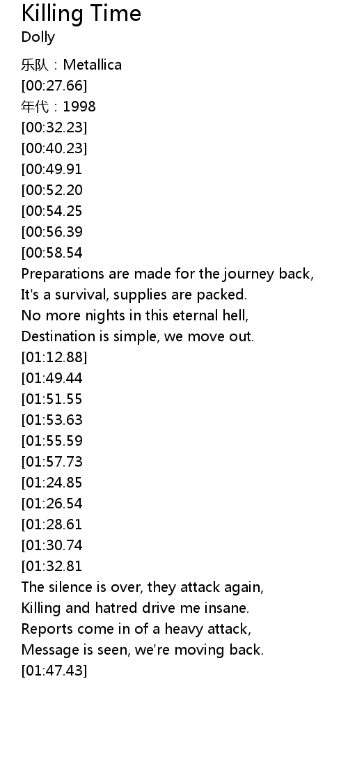| [02:46.31][01:49.44][01:14.74] | Killing time - You left from the line |