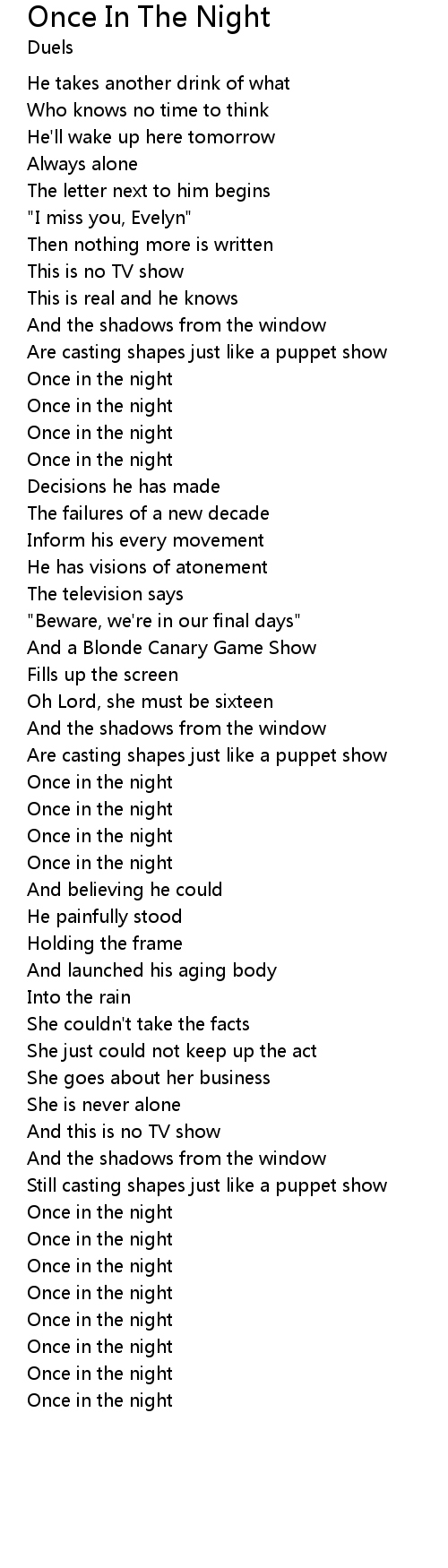 Once In The Night Lyrics